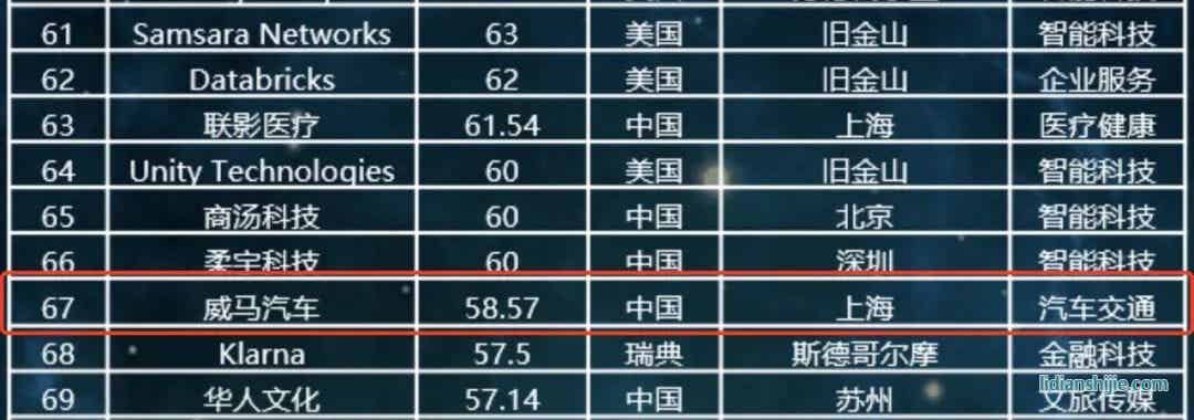 Δ 威马在“2020全球独角兽企业500强”榜单中位列67名