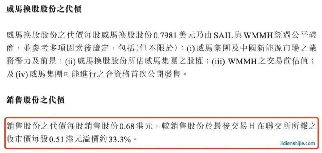 Δ SAIL溢价33.3%对威马股份进行换购