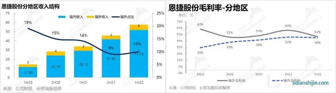 收入、利润稳健如牛,而且背后所体现得公司在湿法隔膜上全球市占率、市场地位也是一贯的稳固。稳固的市占率和显著超越电池产业链同行的毛利率,也让它作为行业的龙头,没有去博弈和传导涨价压力,同时中国动力电池厂市占率强势提升,也影响了它海外收入占比的结构性提升,这些因素都短期影响了毛利率提升的逻辑。