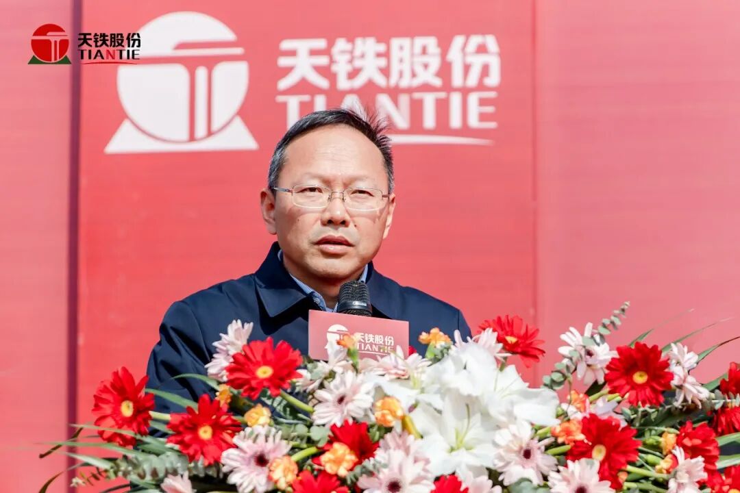 奠基仪式上天铁股份董事长许吉锭发表了讲话,对前来参加奠基仪式的社会各界嘉宾表示欢迎,对合肥市、庐江县政府及相关部门表达了由衷的感谢,并介绍了项目的建设规划,表示将坚决贯彻浙江人的“五千精神”、江苏人的“敢为人先、只争朝夕”精神和安徽人的“诚实守信、以义取利”徽商精神,做好、做实项目建设投产工作,在保证安全质量的基础上,力争早日投入试生产,在庐江这片土地上塑造出天铁股份新形象,为庐江社会经济发展作出应有的贡献。