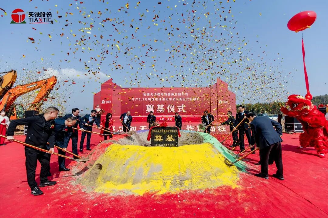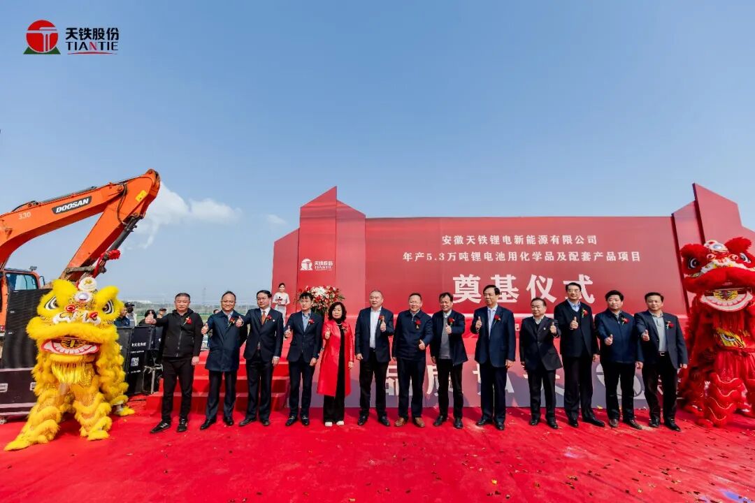 年产5.3万吨锂电池用化学品及配套产品项目奠基典礼仪式的成功举行,为天铁股份在业务板块和产品体系上都打开了新格局,为企业高速发展再造新优势、增添新动能。这是天铁股份顺应国家“碳达峰碳中和”政策发展的一大重要举措,公司未来也将在实现多元化发展战略上迈出新的坚定步伐。