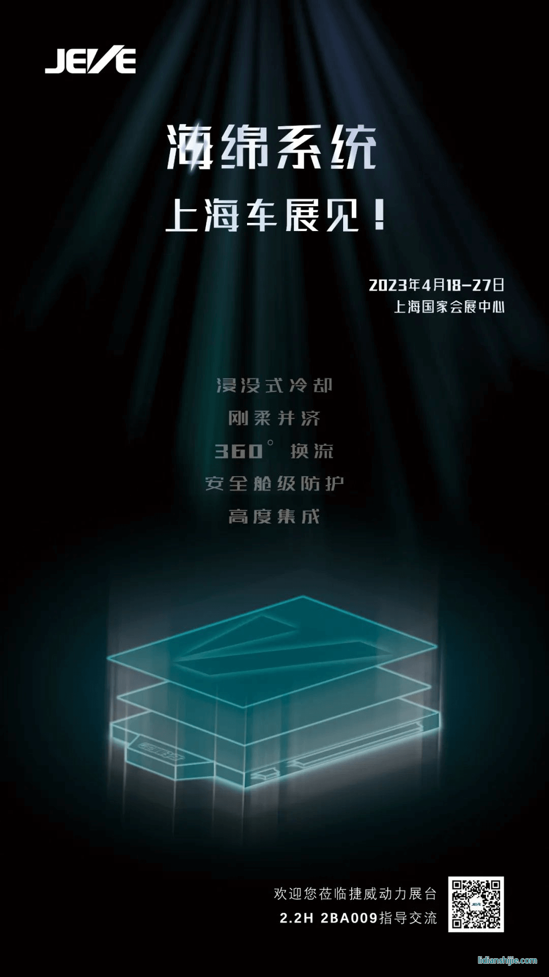 4月13日,随着捷威动力官方发布的第二张车展预热海报,“海绵系统”更多细节被正式揭晓:“浸没式冷却”、“360°换流”、“安全舱级防护”、“高度集成”等更多关键信息释出。