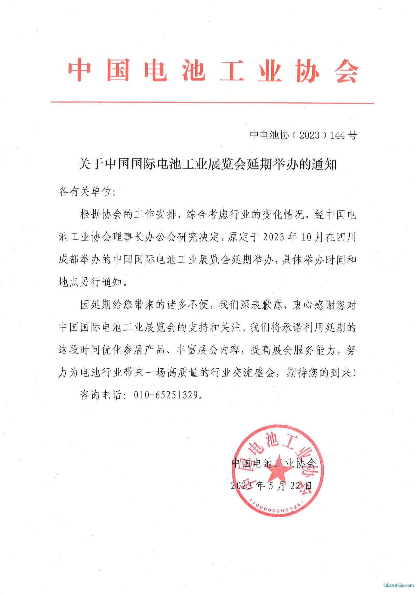 关于中国国际电池工业展览会延期举办的通知 2023-05-24 28030 核心提示:作者:中国电池工业协会 作者:中国电池工业协会 点赞 0举报收藏 0打赏 0评论 0分享 24 更多>同类锂电资讯 • 感觉未来主流会是大电池增程 • 奔驰正加速推进电动车固态电池上车进程 • 磷酸铁锂电池渐成市场主力 • 迷之碳酸锂库存 • 锂电产业链周记 | 宁德时代联手五大车企发布10 • 天能发布全新驻车锂电池产品 • 中力再生锂电叉车成汽车零部件企业降本增效“新 • 德意军火巨头向菲律宾出售先进锂电潜艇 • 广东首个“飞轮+锂电”混合新型储能电站落户广 • 美国关税对于锂电产业链的影响