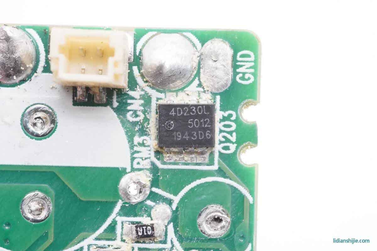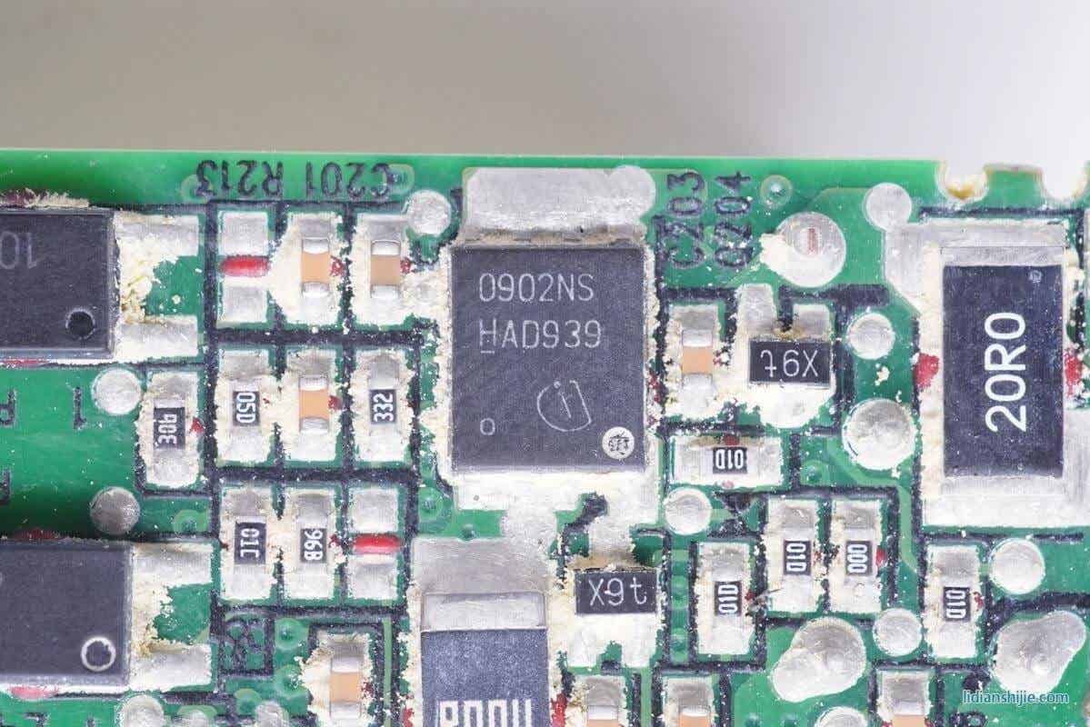 PCB板另外一面同样是两颗英飞凌的MOS以及对应的控制器。