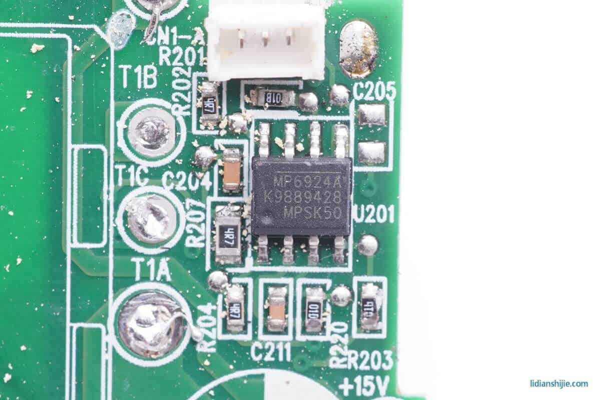 输出同步整流采用MPS MP6924 双路LLC同步整流控制器,可驱动两个同步整流管,支持快速关断,支持DCM、CCM和CrCM工作模式,外围元件精简。MP6924支持35V输出电压,可搭配逻辑电压和标准电压的同步整流管,支持CCM、CrCM和DCM运行模式,支持高侧和低侧同步整流,采用SOIC-8封装。