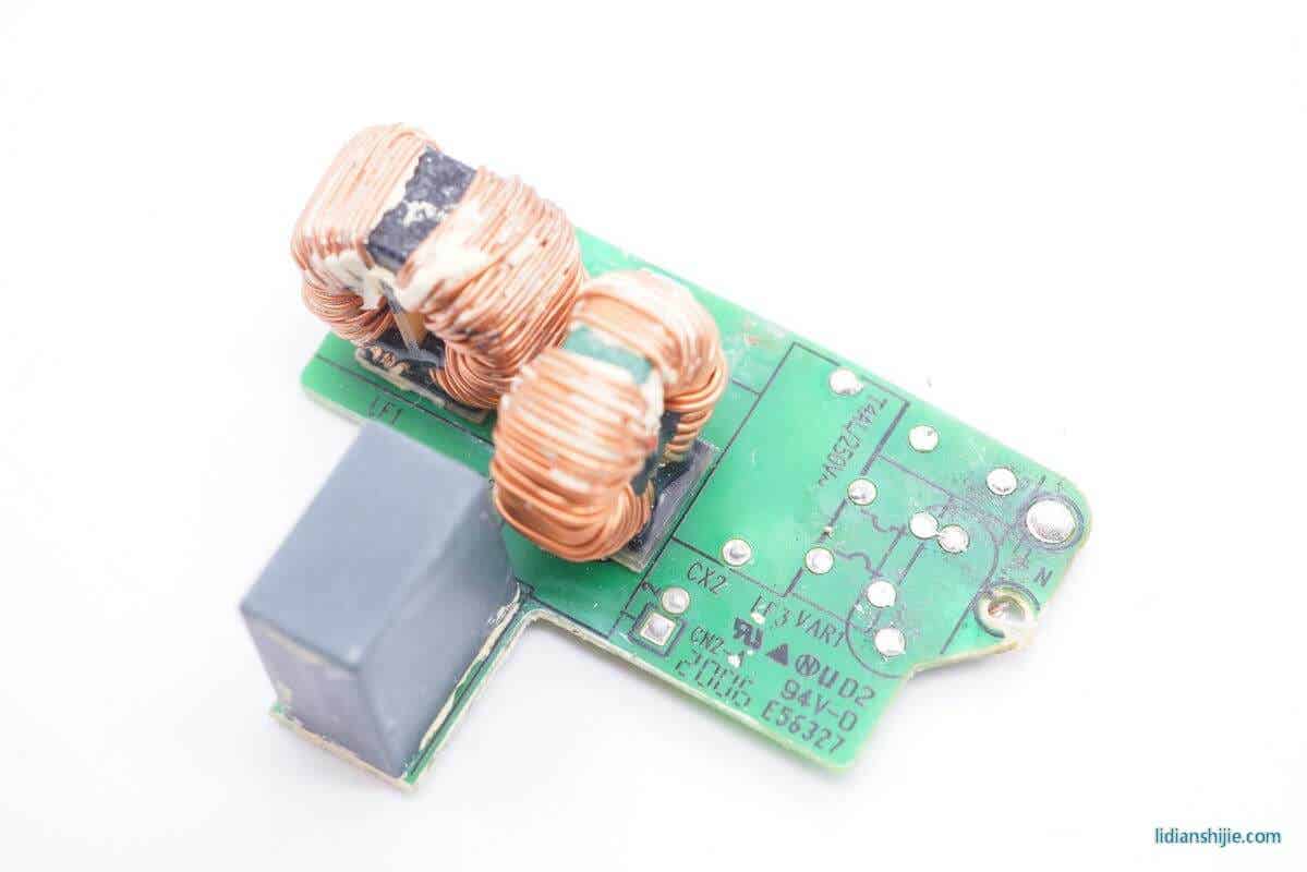 PCB上设有一颗安规X电容和两颗共模电感。