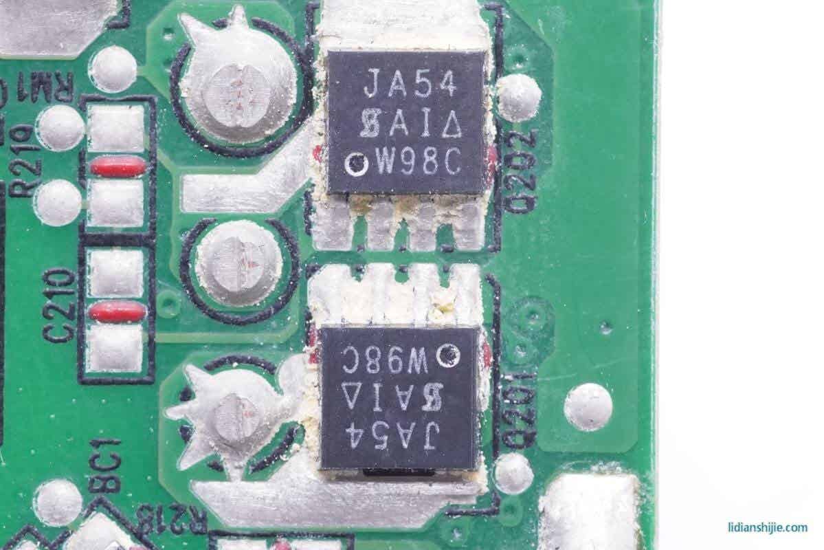 两颗同步整流MOS管同型号,来自VISHAY威世半导体,型号SiJA54DP,耐压40V。