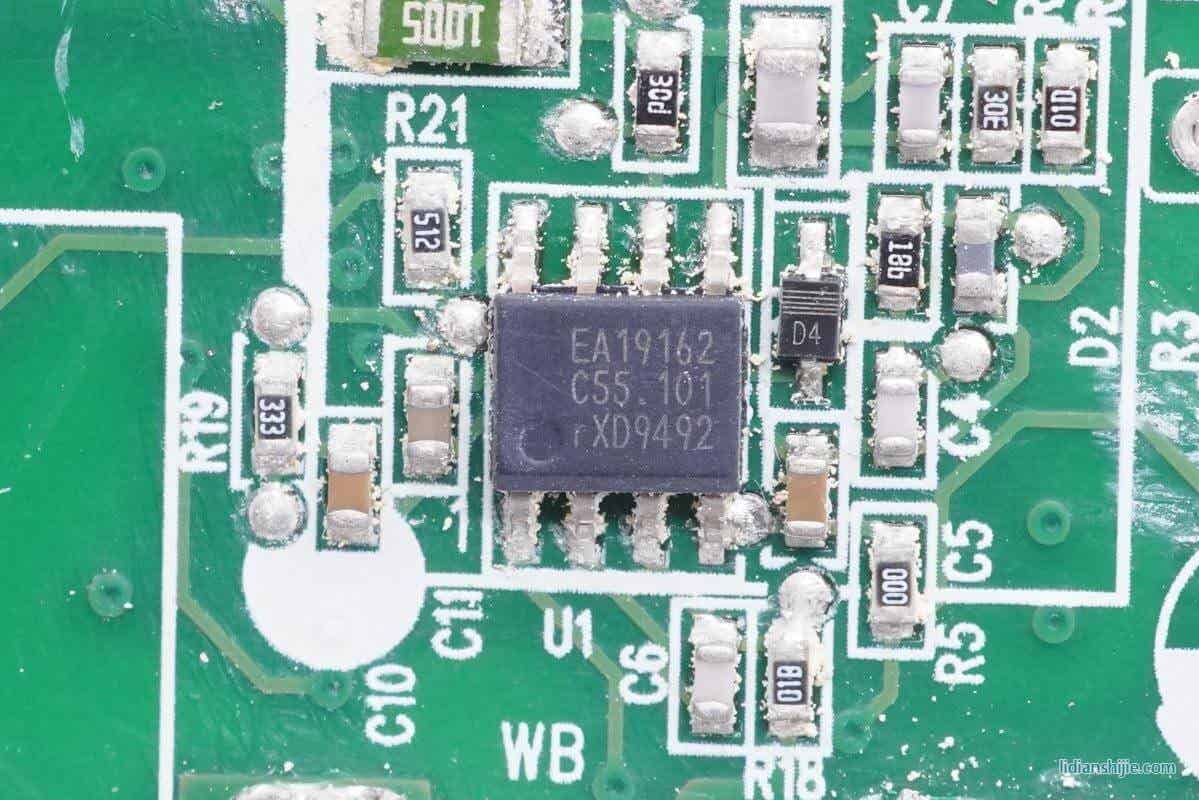 PFC控制器采用NXP恩智浦TEA19162,用于将整流后的电压升压,进行主动功率因数校正,内部集成X电容放电元件,无需外部元件,集成软启动和关断,支持高精度稳压升压,并且内置多重完善的保护功能。