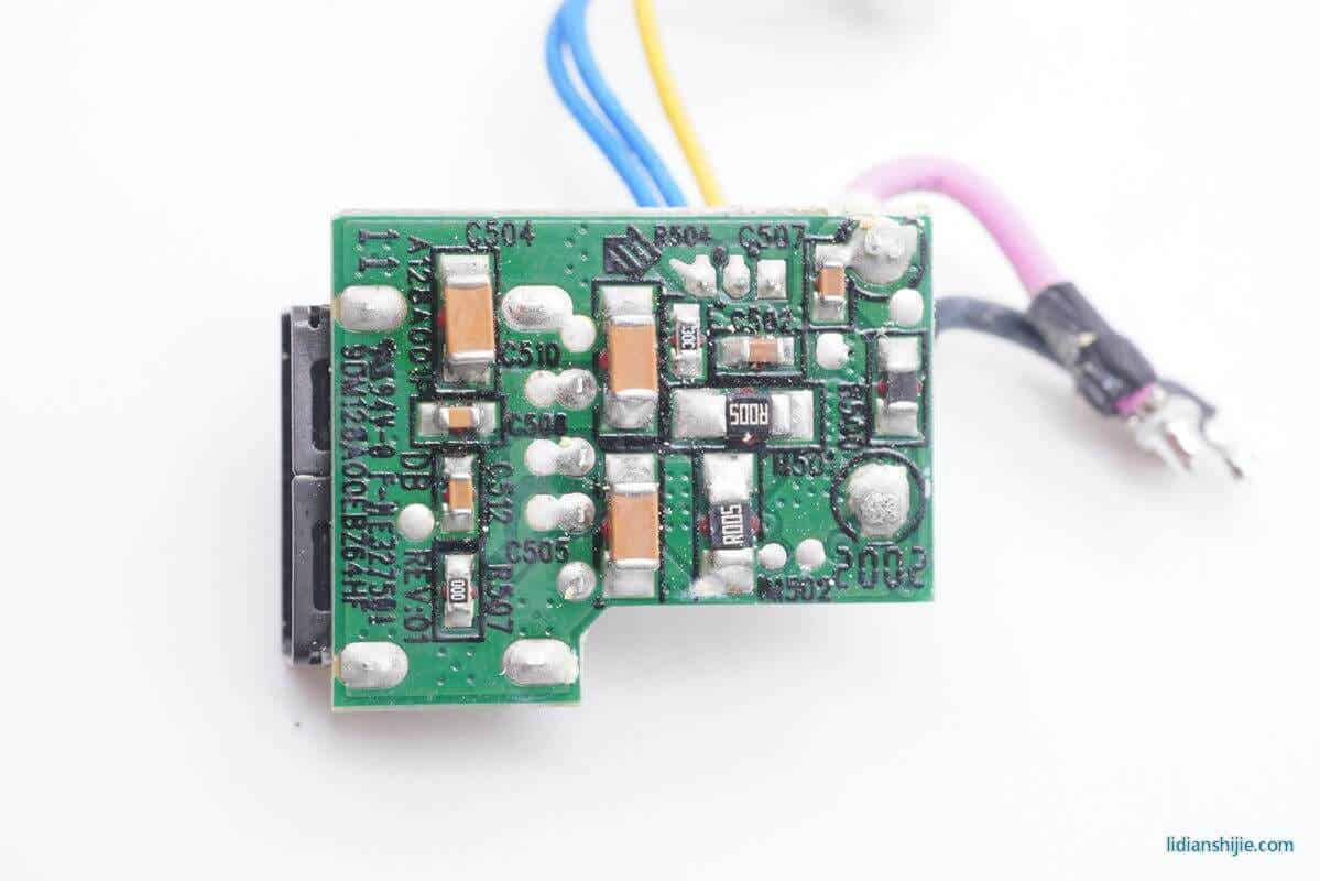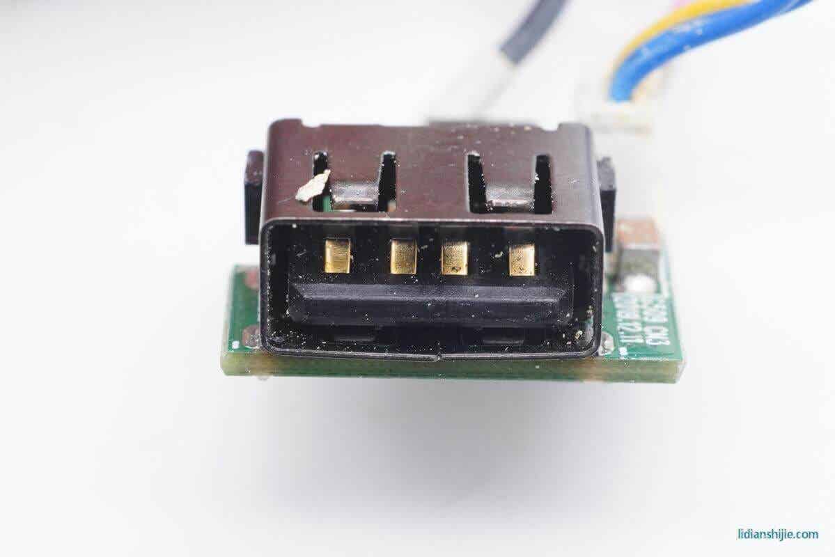 USB-A接口与主PCB板之间除了两根电源线之外,还有三根信号线。