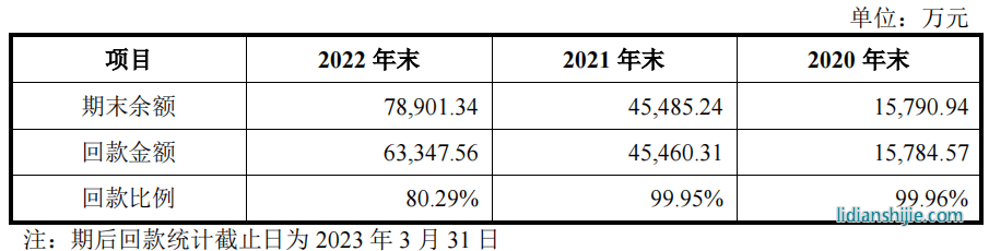 相比往期近乎100%的回款比例,2022年末,西典新能的回款比例直线下降为80.29%。