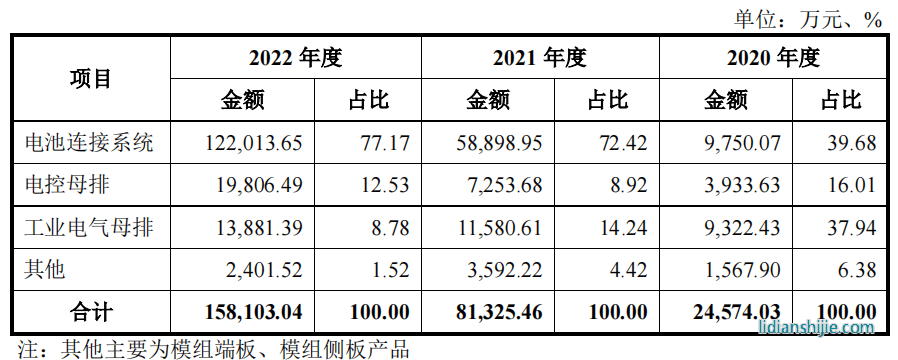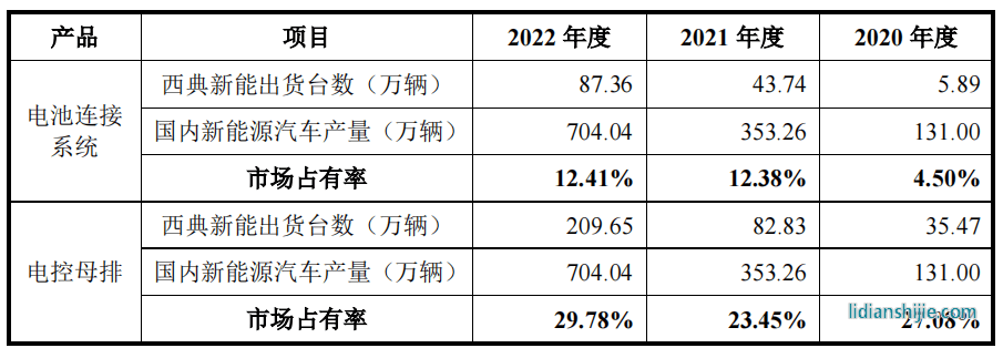 在新能源汽车领域,公司电控母排市场产品2022年度占有率接近30%,电池连接系统产品市场占有率超过10%。