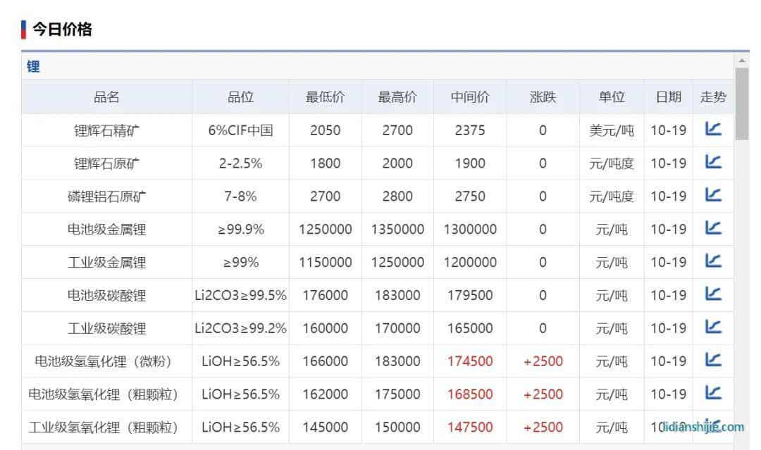 上海钢联发布数据显示,10月19日,电池级碳酸锂均价报17.95万元每吨,去年年底电池级碳酸锂最高价格超过60万元每吨,下滑了70.08%。即便如此,仍有很多电池厂商在继续看衰,孚能科技董事长王瑀就表示价格还要继续跌,未来要下探到每吨10万元以下。