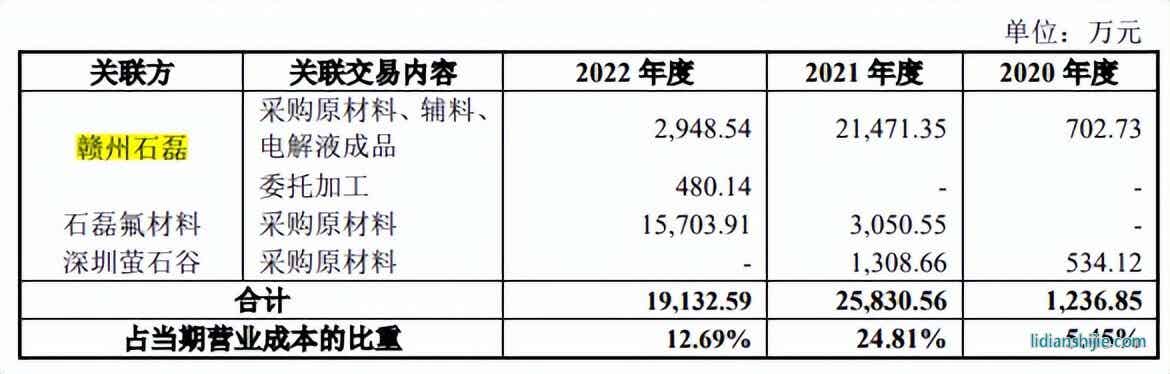 2018年6月,珠海赛纬增资方式取得赣州石磊50.00%股权,2022年1月转出。赣州石磊2021年营业收入4.912亿元,其中4.147亿元来自公司。2021年及以前,珠海赛纬向赣州石磊采购其为公司生产的电解液;2022年,赣州石磊作为公司委外加工商为公司受托加工生产电解液,公司提供原材料,并向赣州石磊支付委托加工费。