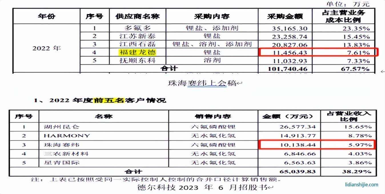 珠海赛纬的上会稿中,福建龙德为其2022年第四大客户,采购额度为11,456.43万元,占比10.82%。而福建龙德为拟上市企业福建德尔科技股份有限公司的全资子公司,在福建德尔的招股书中,披露珠海赛纬2022年为其第三名,成交额度为10,138.44万元,占比5.97%,相差了1,318万元之多,两者的信披形成冲突,不知以何方为准。