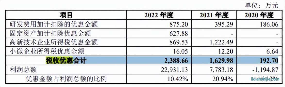 报告期公司税收优惠合计分别为192.70万元、1,629.98万元和2,388.66万元,占公司利润总额的-16.13%、20.94%和10.42%。