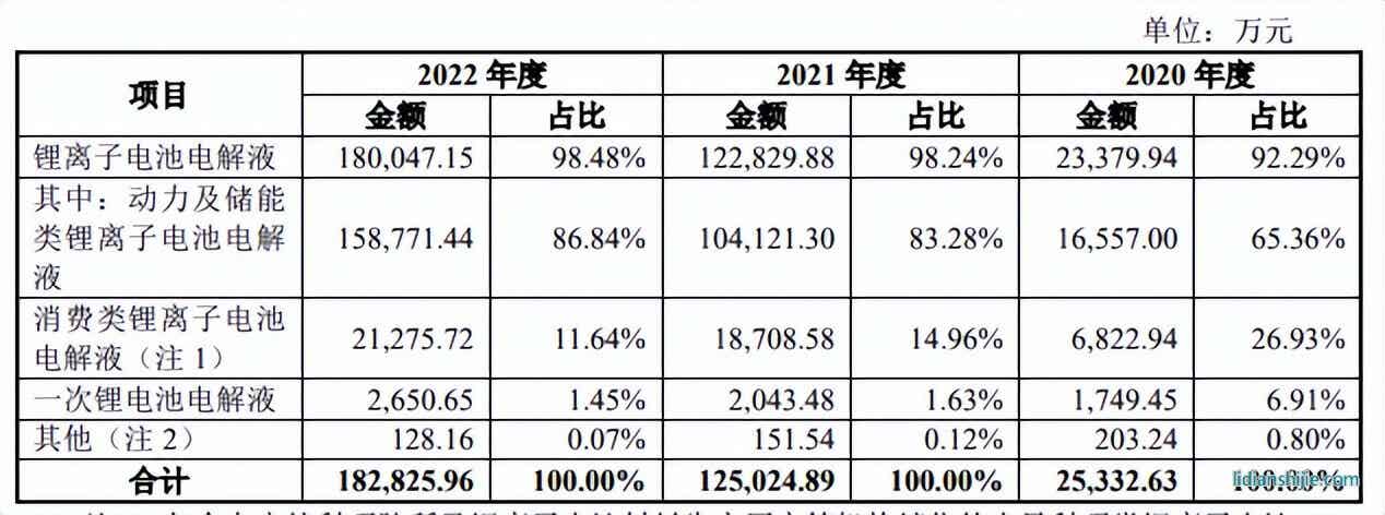 报告期内,公司主营业务成本中直接材料金额占比分别为89.51%、74.42%和95.01%,占比较高,公司锂离子电池电解液原材料为锂盐、有机溶剂和添加剂,其中锂盐金额占比最高。锂盐的主要供应商为多氟多(002407.SZ)、江苏新泰(天际股份002759.SZ之子公司)、石磊氟材料、宏源药业(301246.SZ)、福建龙德等,溶剂的主要供应商为抚顺东科、辽阳信友、胜华新材(603026.SH)、海科新源(301292.SZ)等,添加剂的主要供应商为多氟多(002407.SZ)、山东亘元等。