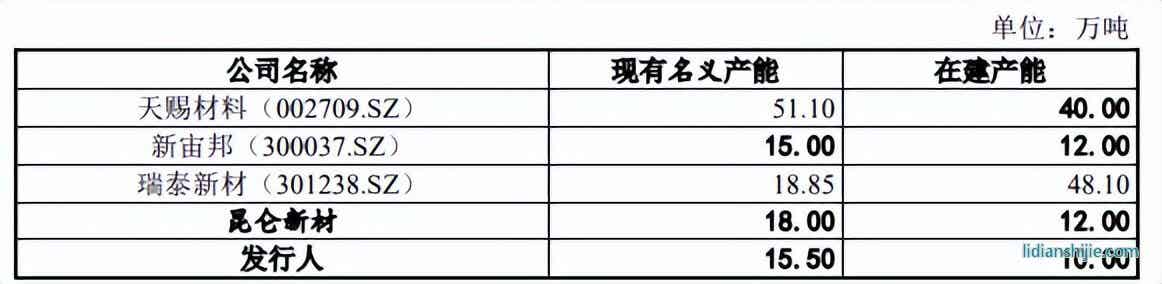 根据同行业可比公司公开披露信息,公司与同行业可比公司现有电解液名义产能及在建产能情况对比上看,2023年8月4日,公司年产10万吨二次锂离子电池电解液项目投入试生产,相关名义产能已统计入表格,公司电解液名义产能已达15.50万吨。