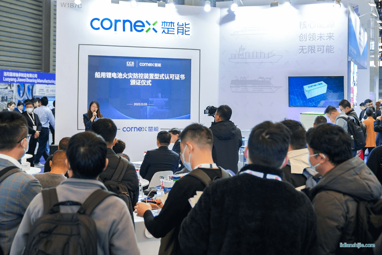 12月5日,2023中国国际海事技术学术会议和展览会在上海盛大开幕。楚能新能源携多款船舶专用电池产品精彩亮相,并凭借行业首创“船用锂电池火灾防控装置”获中国船级社型式认可证书。