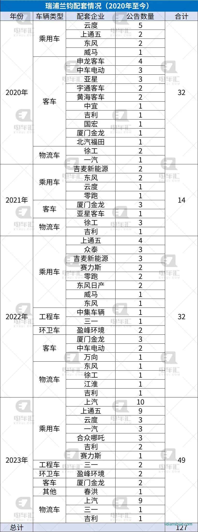 电车汇依据新车公告数据统计,自成立至今,瑞浦兰钧已配套电池的整车企业集团客户包含上汽、厦门金龙、徐工、吉利、东风、中车电动、吉麦新能源、盈峰科技、一汽、亚星客车、三一、申龙客车、赛力斯、零跑、合众哪吒、宇通客车、上通五、云度等29家,配套的产品覆盖了客车、乘用车、物流车、环卫车、工程车等车型,其中以乘用车和客车产品为主。