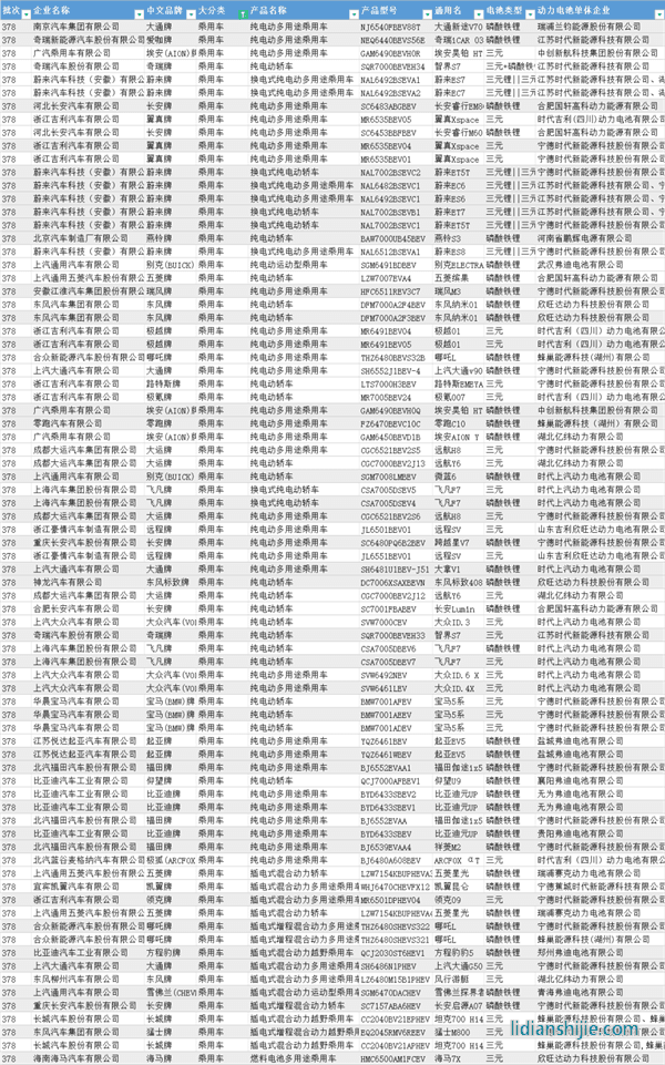 第378批《道路机动车辆生产企业及产品公告》新能源乘用车及电池配套信息