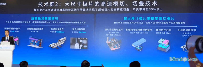 在面对大尺寸极片高速切叠难控制的问题上,广汽埃安在模切叠片工序上通过高速极耳抚平等一系列技术,完成超长极片的高精度切叠,不良率降低35%以上。
