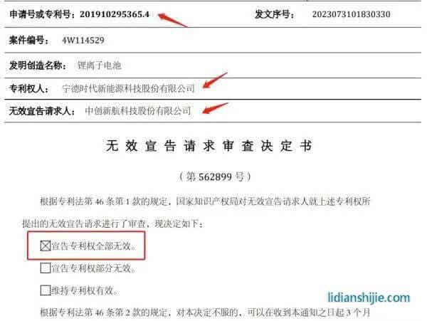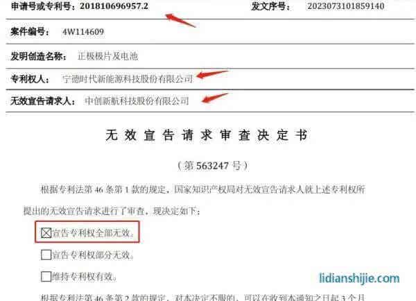 随着诉讼案的推进,国家知识产权局介入审查。2022年5月公开信息显示,国家知识产权局裁定宁德时代的“防爆装置”专利维持全部有效,“集流构件和电池”专利维持部分有效。中创新航已撤回针对“动力电池顶盖结构及动力电池”的专利无效请求。2023年8月公开消息显示,国家知识产权局裁定“锂离子电池”和“正极极片及电池”两项发明专利无效。