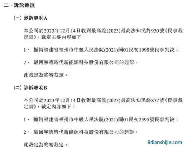 近日,最高人民法院裁定宁德时代两项专利侵权诉讼案败诉。