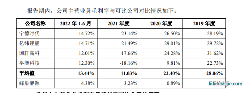 蜂巢能源亏损如此严重,主要原因在于其毛利率也偏低。在《关于蜂巢能源科技股份有限公司首次公开发行股票并在科创板上市申请文件的审核问询函》回复函中显示,2020年到2022版半年期间,蜂巢能源的毛利率分别为0.89%、3.23%和4.38%。