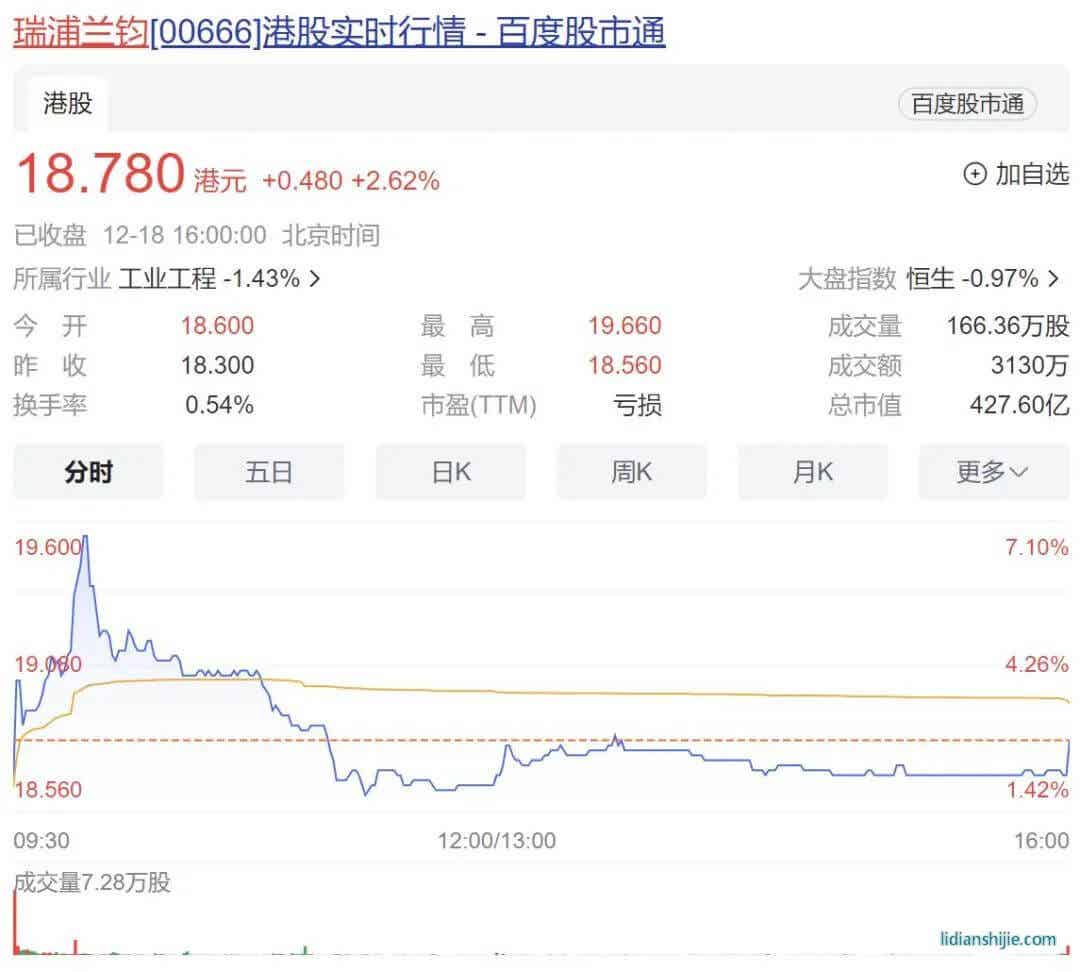 12月18日,瑞浦兰钧能源股份有限公司以“瑞浦兰钧”为股票简称在香港联合交易所主板挂牌交易。