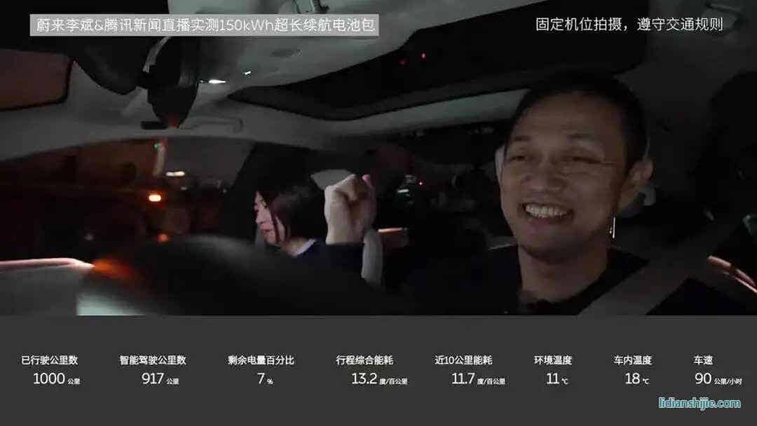 12月17日,李斌一路啃着牛肉干和华夫饼,在寒冬中历经14小时(行驶12.4小时),亲自测试了自家研发的150kWh半固态电池包的实际续航能力。搭载这块电池包的ET7最终跑了1044公里。测试完,电池剩余电量还有3%,还可以行驶30公里。