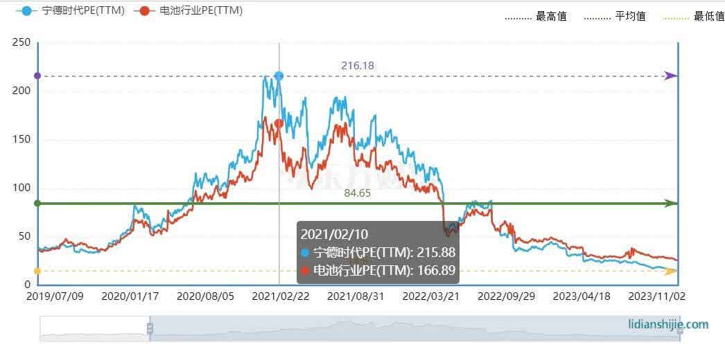 从股市来看,虽然宁德时代净利润是增长的,但损失的10000亿,主要原因是2021年PE(TTM)高达200多倍,而现在仅14倍多。