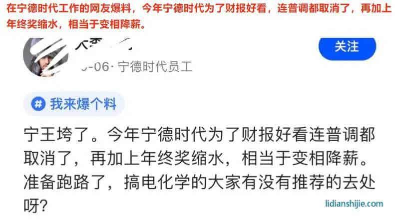 最近有网友爆料:今年宁德时代连普调都取消了,再加上年终奖缩水,相当于变相的降薪...