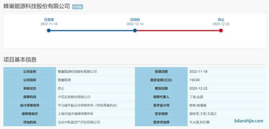按照上海证券交易所文件披露的,是蜂巢能源及保荐人中信证券主动提交的“撤回申请文件”,然后上交所才终止蜂巢能源的上市审核。