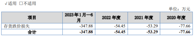 报告期内,公司存货跌价损失分别为-77.66万元、-53.29万元、-54.45万元、-347.88万元。
