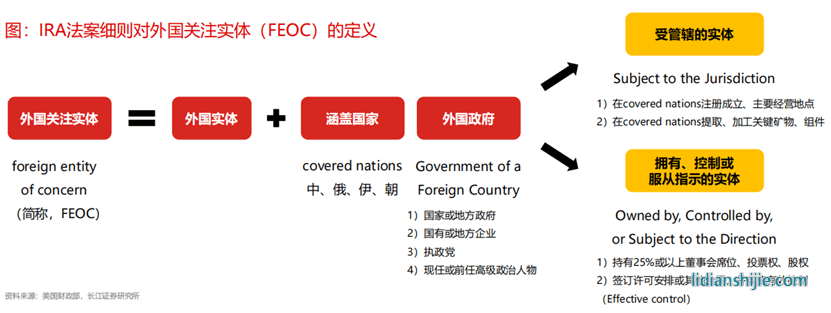 此外,还要求符合减免条件的电动车辆,从2024年开始不得包含任何由“敏感外国实体”(FEOC)制造或组装的电池组件。从2025年开始不得包含任何由FEOC提取、加工或回收的关键矿物。一句话,不得用中国进口的电池,并且从材料源头卡住,必须在本地生产。
