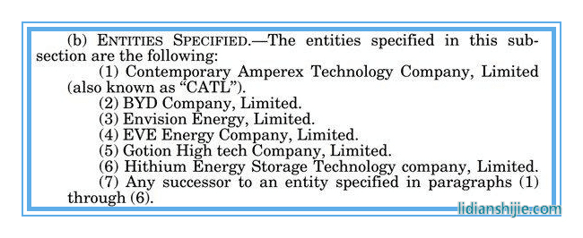 这项规定将从2027年10月起开始,规定禁止美国国防部从宁德时代(CATL)、比亚迪(BYD)和其他四家中国公司采购电池。另外四家包括远景能源、亿纬锂能、国轩高科和海辰储能。