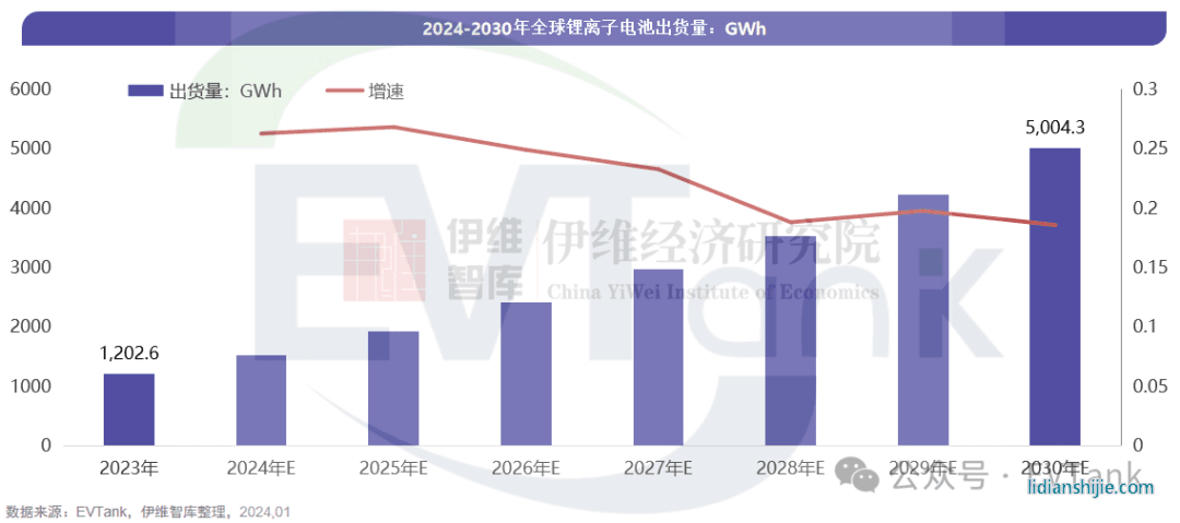 根据研究机构EVTank、伊维经济研究院联合中国电池产业研究院近日共同发布的《中国锂离子电池行业发展白皮书(2024年)》数据,2023年全球锂离子电池总体出货量1202.6GWh,同比增长25.6%。其中,2023年中国的出货量达到887.4GWh,在总体出货量中占比达到73.8%,且出货量占比继续提升。