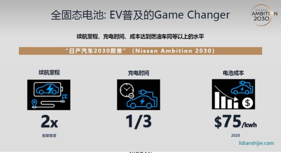 据悉,日产的固态电池完全去除了电池中的液体元素,将大大提高存储和电力传输的效率。不仅比现下的锂电池节省50%的成本,能量密度也将提高一倍,充电速度提高三倍。