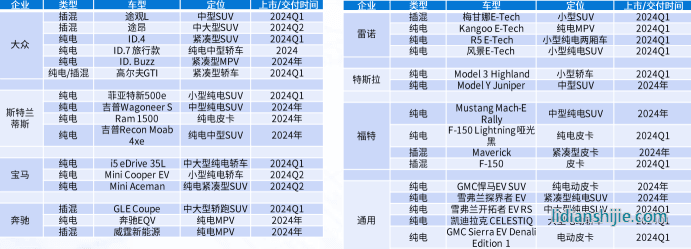 渗透率来说,新能源汽车渗透率抬升,混动比例有所提升。2023年美国市场新能源汽车新能源渗透率达到9.1%,抬升2.2pct;其中,BEV占比80.9%。2024年1-3月新能源渗透率达到9.4%,相较于2023年全年抬升0.3pct;其中,BEV占比77.7%。