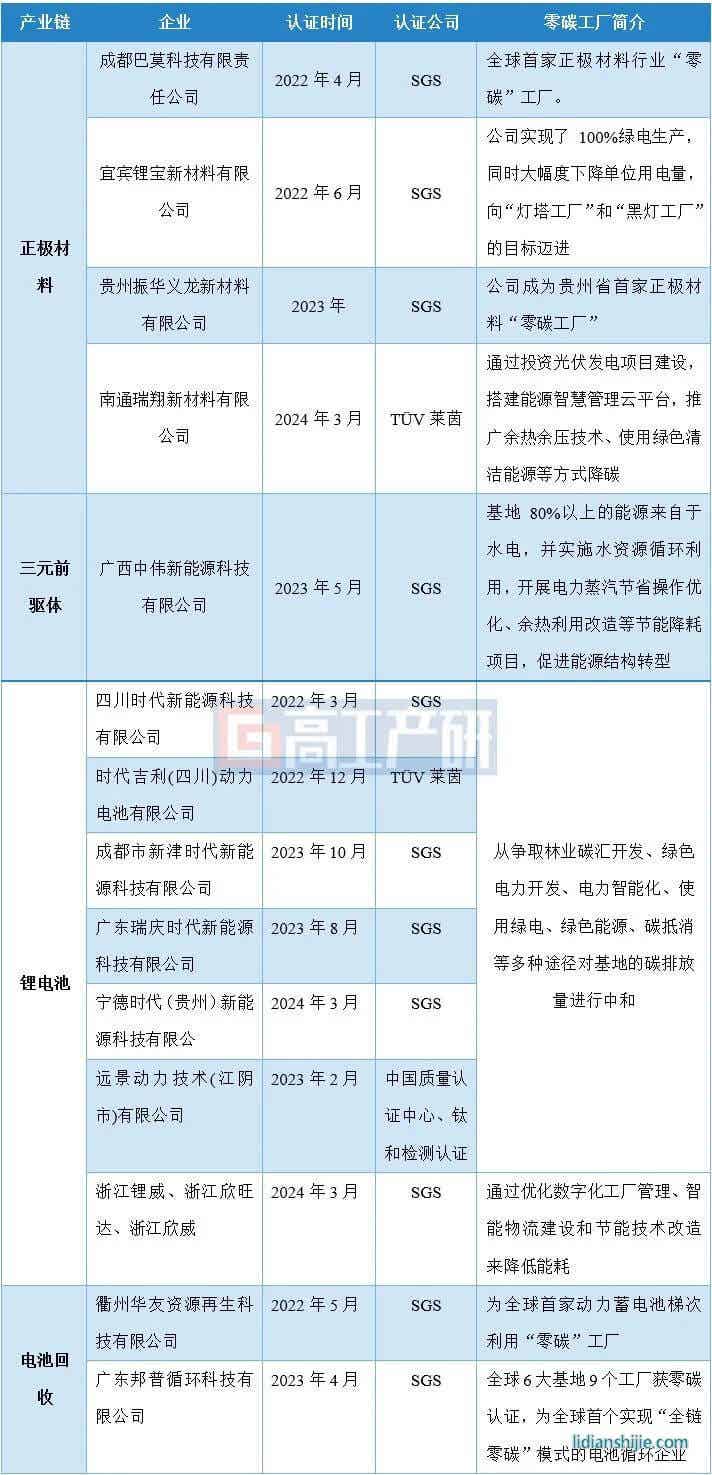 我国已有多家正极材料、电池生产以及回收企业通过国际第三方零碳工厂认证: