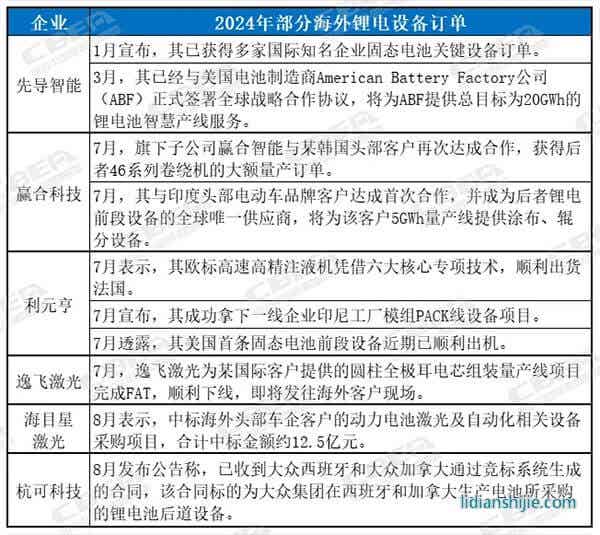 在此背景下,具备行业领先优势的中国锂电设备头部企业“捷报”频传。今年以来,已有多家中企公布其所斩获的海外锂电设备订单。