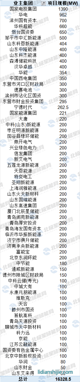 此外,烟台国资委、邹平市中汇新能源、山东科恩新能源、山东中隆能源、山东科杰能源、森溥储能科技入库规模也都在400MW及以上。