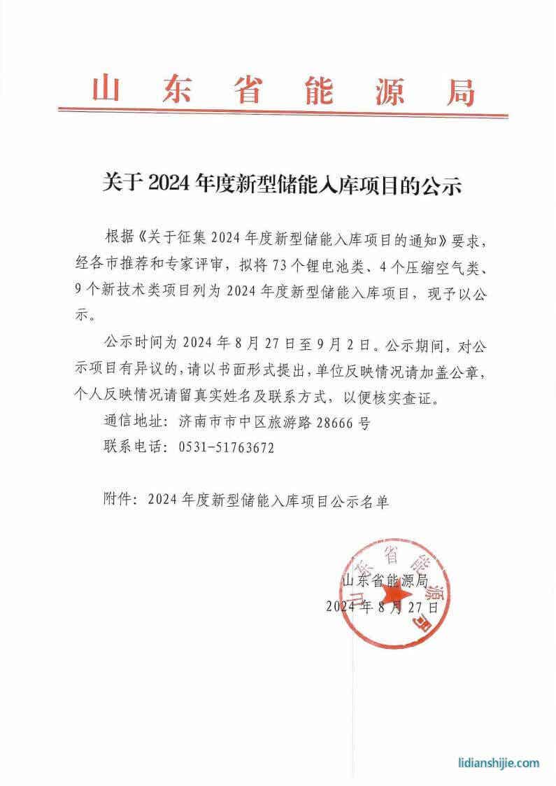 根据《关于征集2024年度新型储能入库项目的通知》要求,经各市推荐和专家评审,拟将73个锂电池类、4个压缩空气类、9个新技术类项目列为2024年度新型储能入库项目,现予以公示。