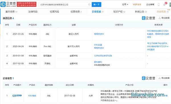 企查查显示,中科海钠成立于2017年,是一家专注于新一代储能体系-钠离子电池研发与生产的高新技术型企业,企业拥有多项钠离子电池材料组成、结构、制造和应用的核心专利,是国际少有拥有钠离子电池核心专利与技术的电池企业之一。