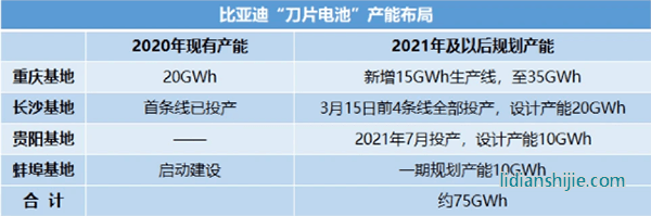 综合以上四个生产基地规划年产能,刀片电池的年产能有望达到75GWh。