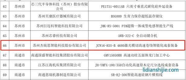 核心提示:近日,2024年江苏省首台(套)重大装备名单公示,苏州杰锐思智能科技自主研发的“JCW16-H3S-B 4680激光模切高速卷绕智能化成套装备