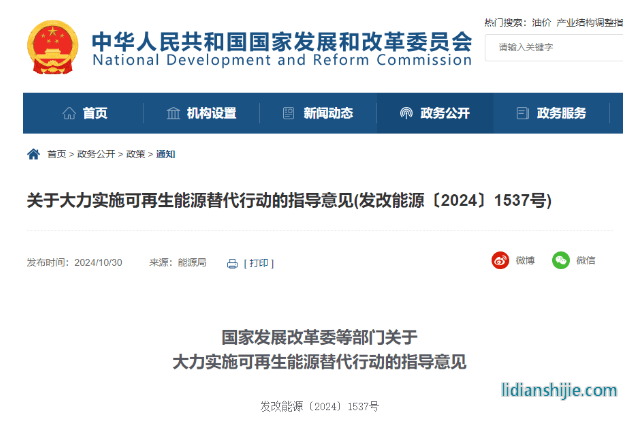 据国家发展改革委网站10月30日消息,国家发展改革委、工业和信息化部、住房城乡建设部、交通运输部、国家能源局、国家数据局等六部门日前发布关于大力实施可再生能源替代行动的指导意见。