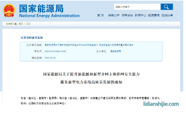 国家能源局关于提升新能源和新型并网主体涉网安全能力
