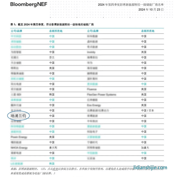 彭博新能源财经(BloombergNEF,简称“BNEF”) 正式发布了2024年第四季度全球Tier 1一级储能厂商榜单,瑞浦兰钧凭借领先的技术实力、可靠的项目交付质量以及日益增强的全球品牌影响力再次登榜。今年以来,瑞浦兰钧已连续四季度获得这一荣誉,进一步巩固了其在储能行业的领军者地位。