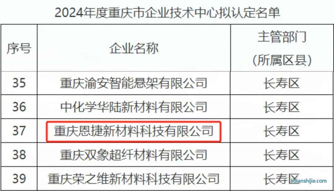 近日,重庆市经济和信息化委员会正式发布《关于公布2024年度重庆市企业技术中心认定名单的通知》,重庆恩捷被认定为“重庆市企业技术中心”。